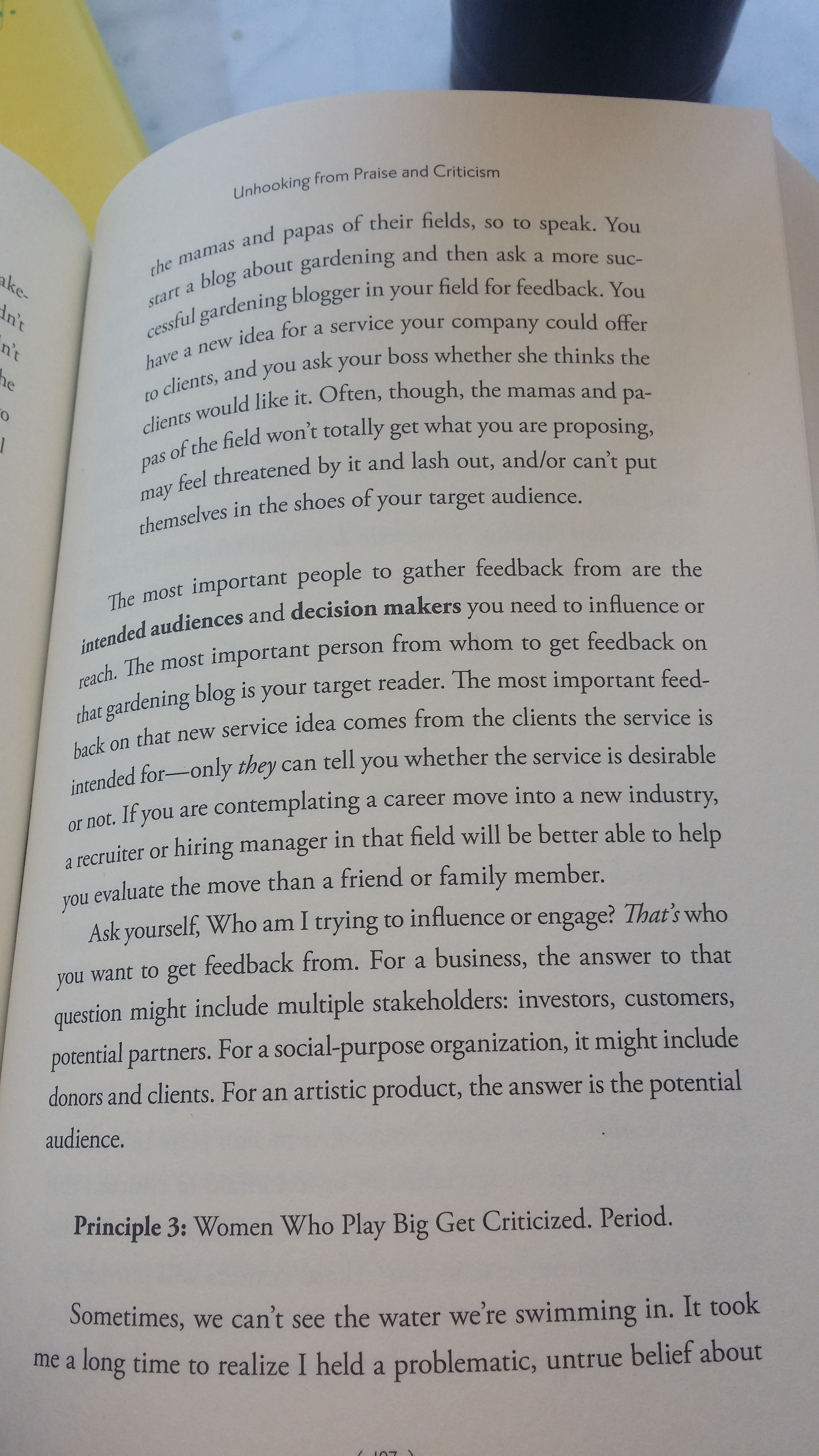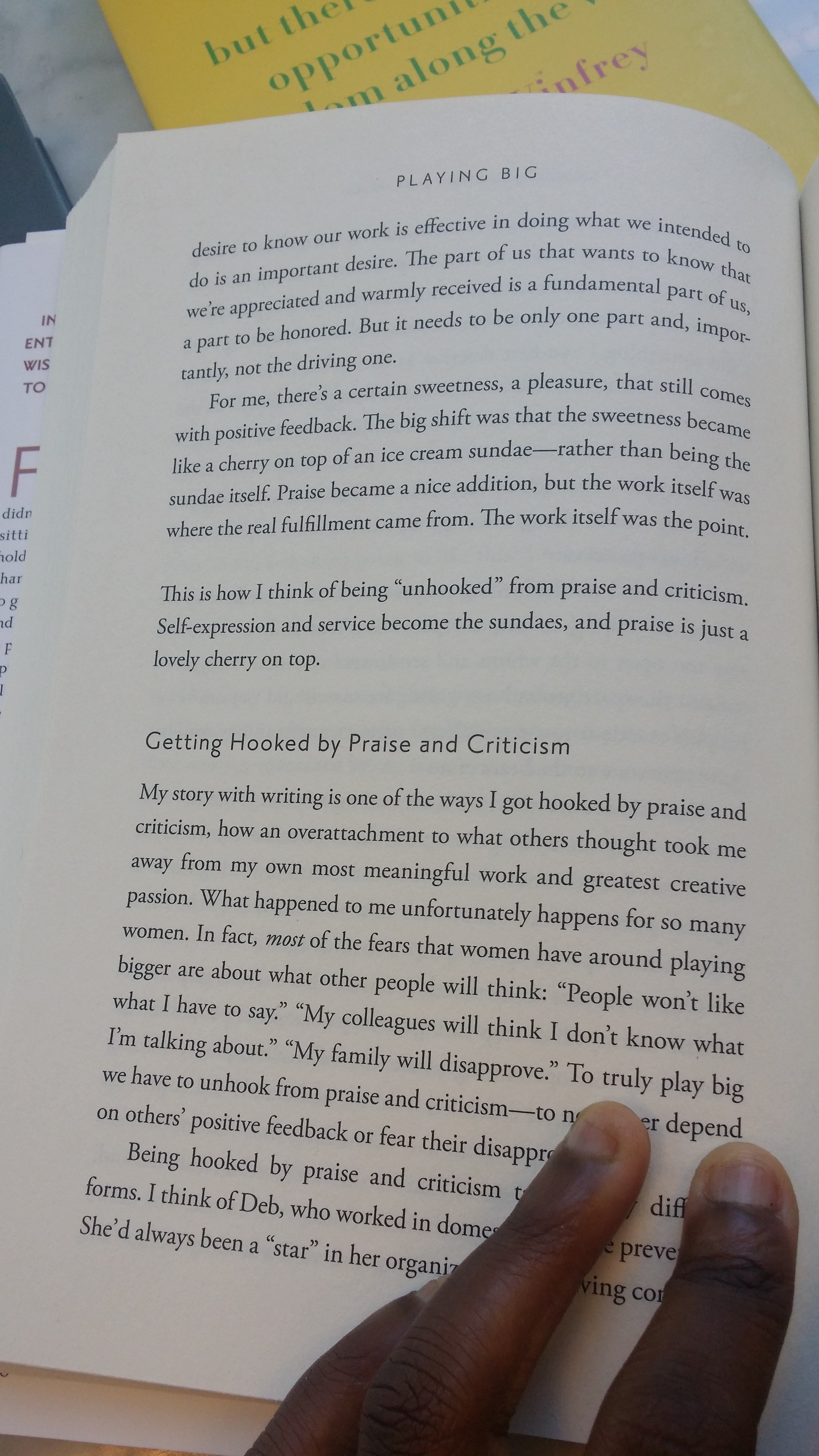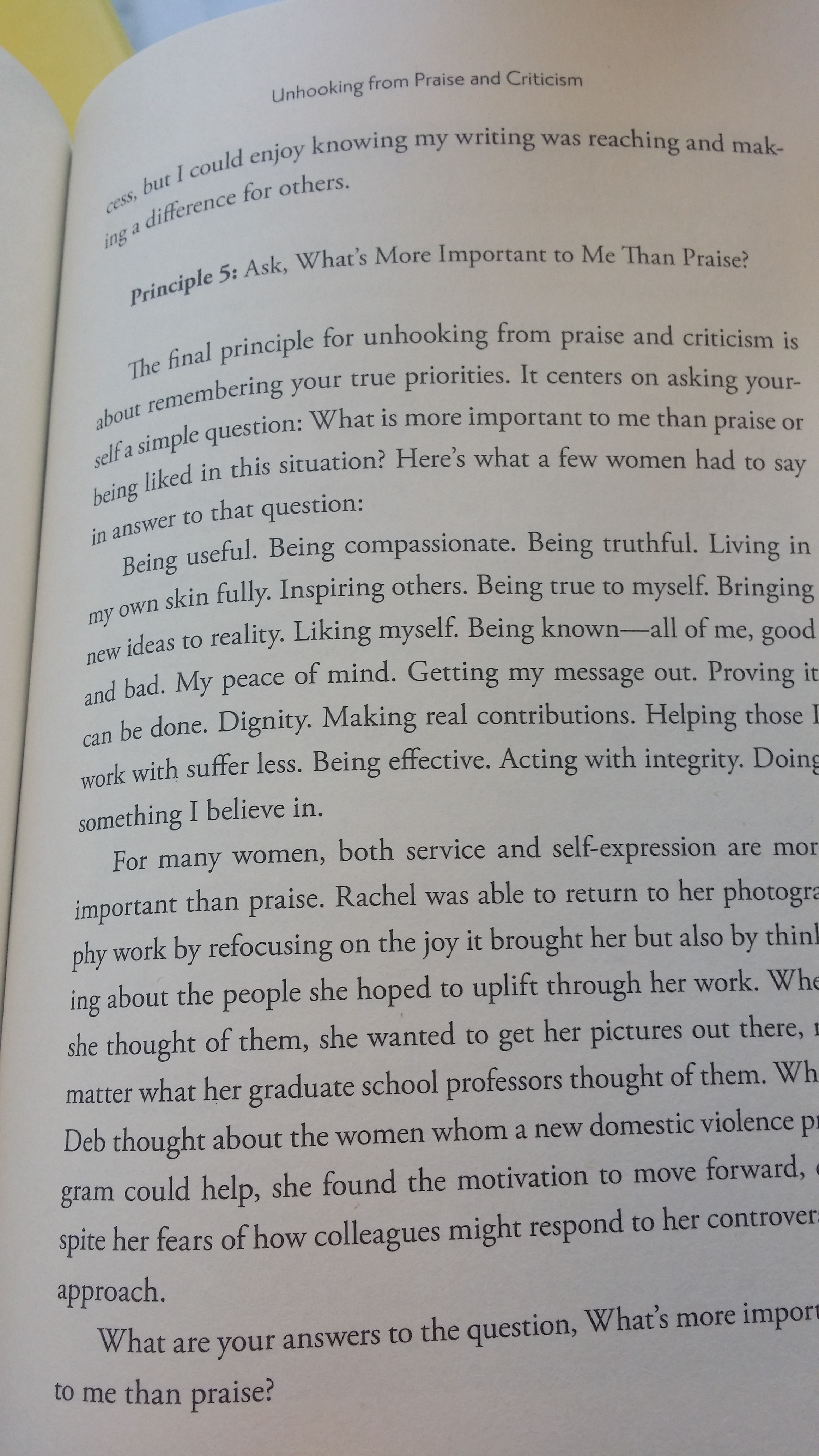 Tara Mohr, author of Playing Big: Find Your Voice, Your Mission, Your Message, writes about unhooking oneself from praise and criticism, something that women often have trouble doing:
